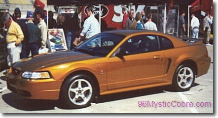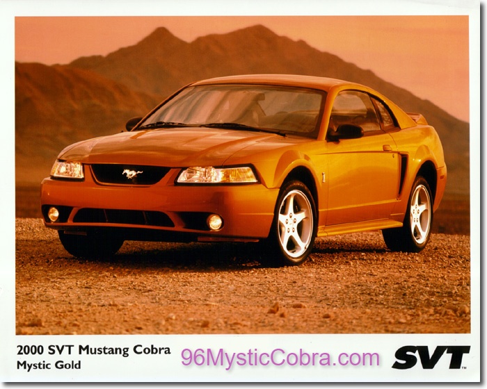 The 2000 Cobras were to use a new color called Mystic Gold. This color would have been limited to 800 cars and would have been used on convertibles as well as coupes, the numbers to be decided by the orders for each. Since the 2000 Cobras were cancelled the color never saw the production line, and it was not part of the 2001 Cobra options.