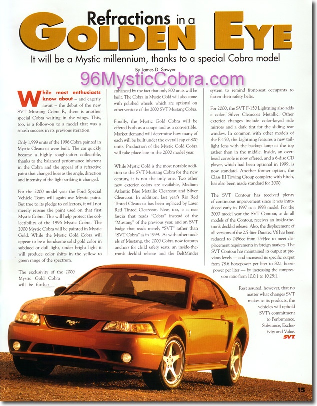 - 3. This is the info on the Mystic Gold that was part of the 2000 Cobra Brochure.