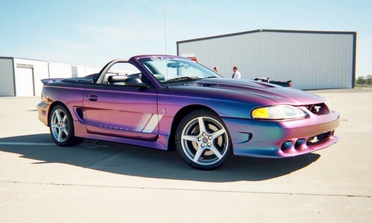 Saleen’s 1996 Press / Promo Folder has multiple mentions and letters about Mystic paint including a slide. All the information is related to The 1995 Horse Of A Different Color Saleen Speedster. Based on how the documents reads I believe at the time it was published Saleen expected Mystic to be available on 1996 Cobra Convertibles. Which we know never ended up happening (Production Numbers). They only ended up making one 1996 Saleen out of the 1999 Mystics coupes produced in 1996.Instead Saleen did introduce Extreme Rainbow in 1996 (No Cobras in 96 were painted Extreme Rainbow) which has been used on multiple years of Mustang since. Saleen has also built a few cars in Deep Violet Purple